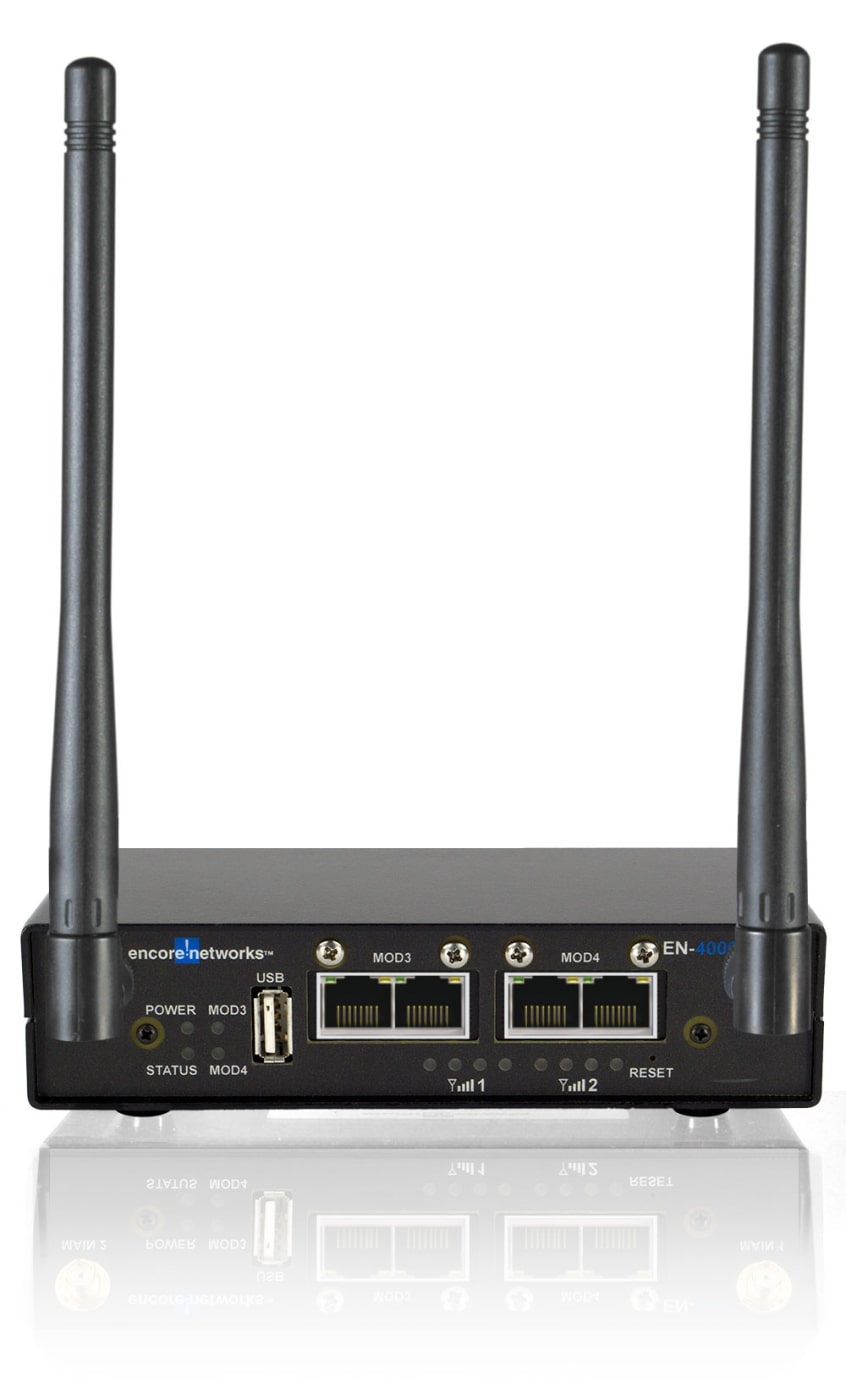 Encore EN-4000 är utrustad med fyra LAN-ethernetportar och en WAN-ethernetport, vilket möjliggör därmed standby till en fast ethernetanslutning och lastbalansering mellan fast och mobilt nätverk.