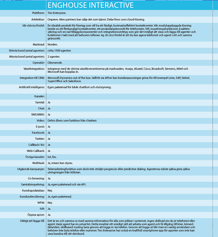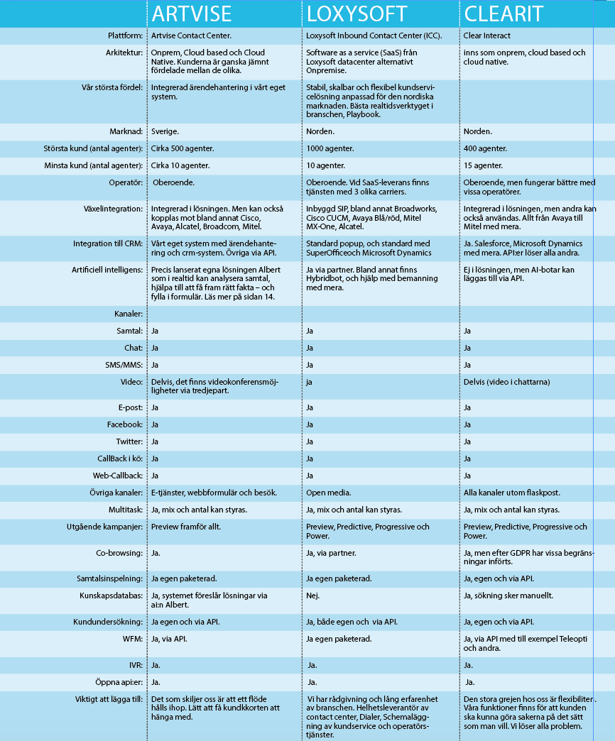 – Det här är de viktigaste på marknaden att visa upp, men det betyder inte att det är de enda. Någon av de andra som finns i vissa nischer, eller som har en del av funktionerna kan också vara värda att utvärdera för kunderna, säger en av de som hjälpt oss med urvalet och som vi låter vara anonym i tidningen.
