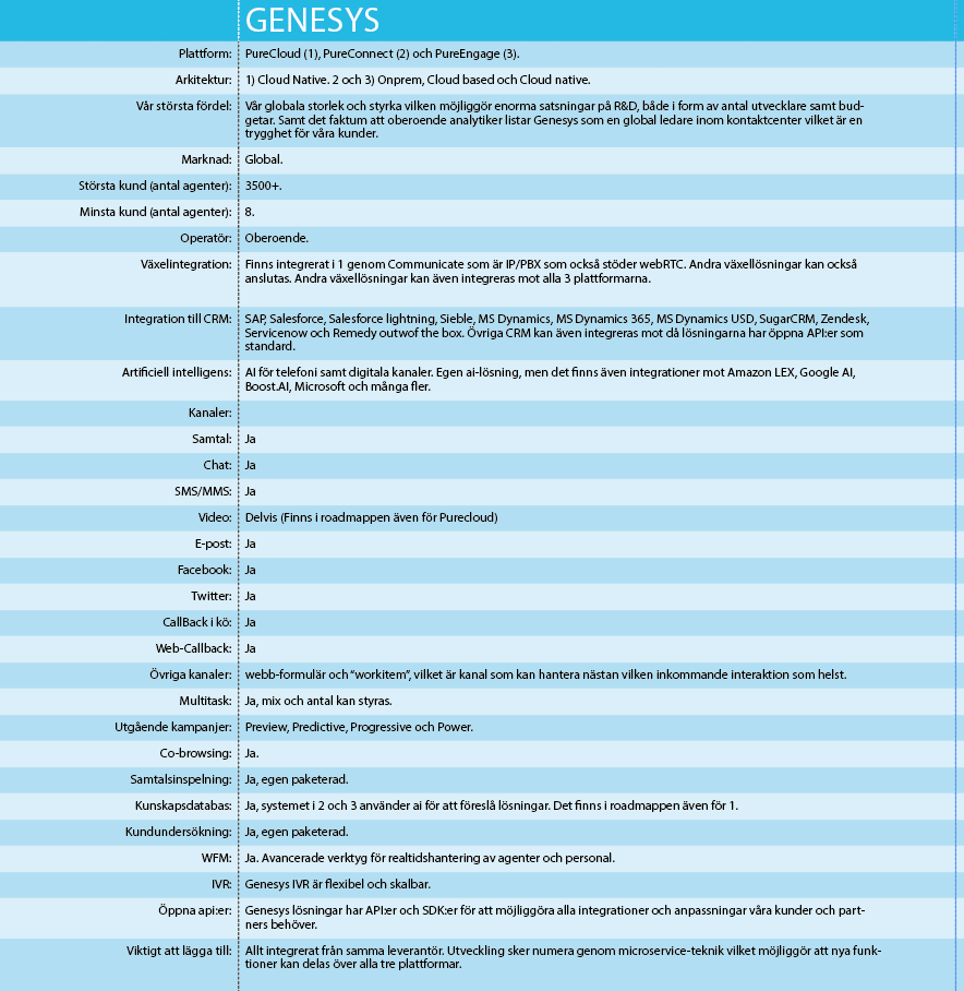 Som ni kommer att se i tabellen är det ganska små skillnader mellan de olika leverantörerna: några har molnlösningar medan andra har onprem. Några har kommit längre med införandet av artificiell intelligens, medan några andra har satsat på möjligheten till att ha koll på agenterna i realtid. Men i verkligheten är skillnaderna stora och för att kunna hjälpa er på traven i jämförandet så har vi frågat experterna, det vill säga två konsulter som hjälper företag att göra valen för sina kontaktcenter.