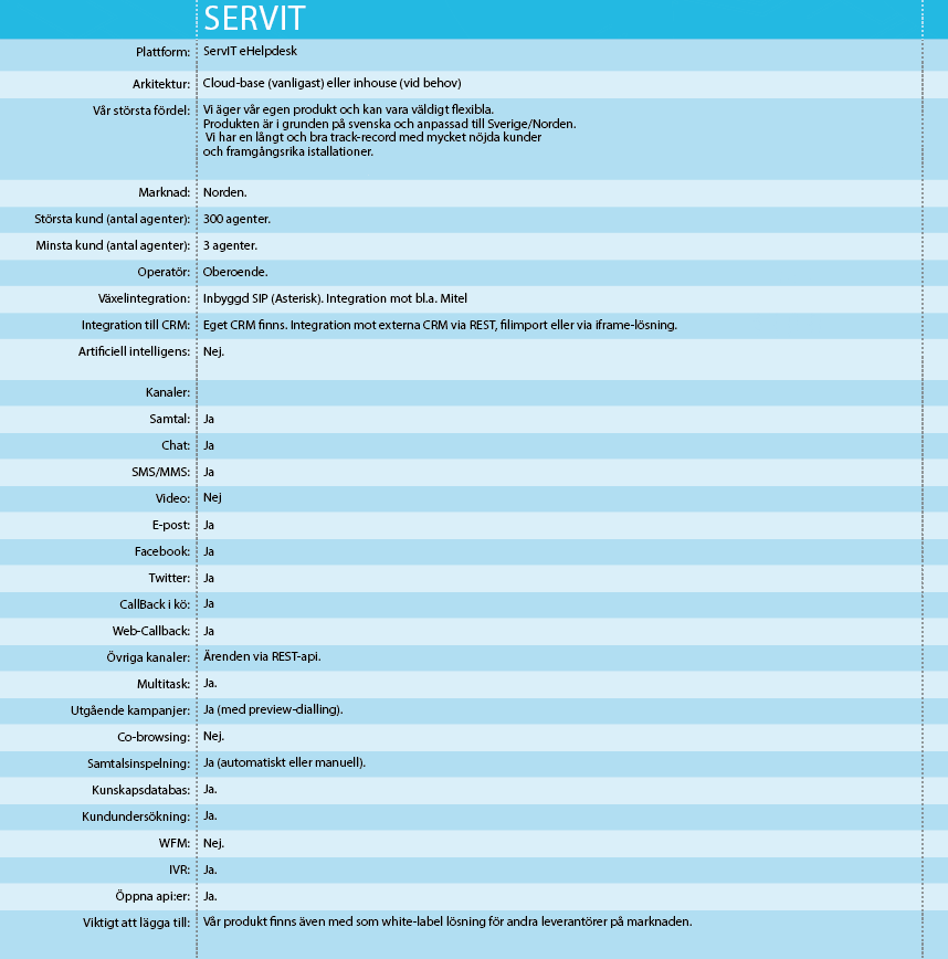 De svar som ni ser på de kommande sidorna är bolagets egna – det är de som lyfter fram sina fördelar och viktiga funktioner. Men urvalet över vilka kanaler, funktioner och liknande som är med är våra.