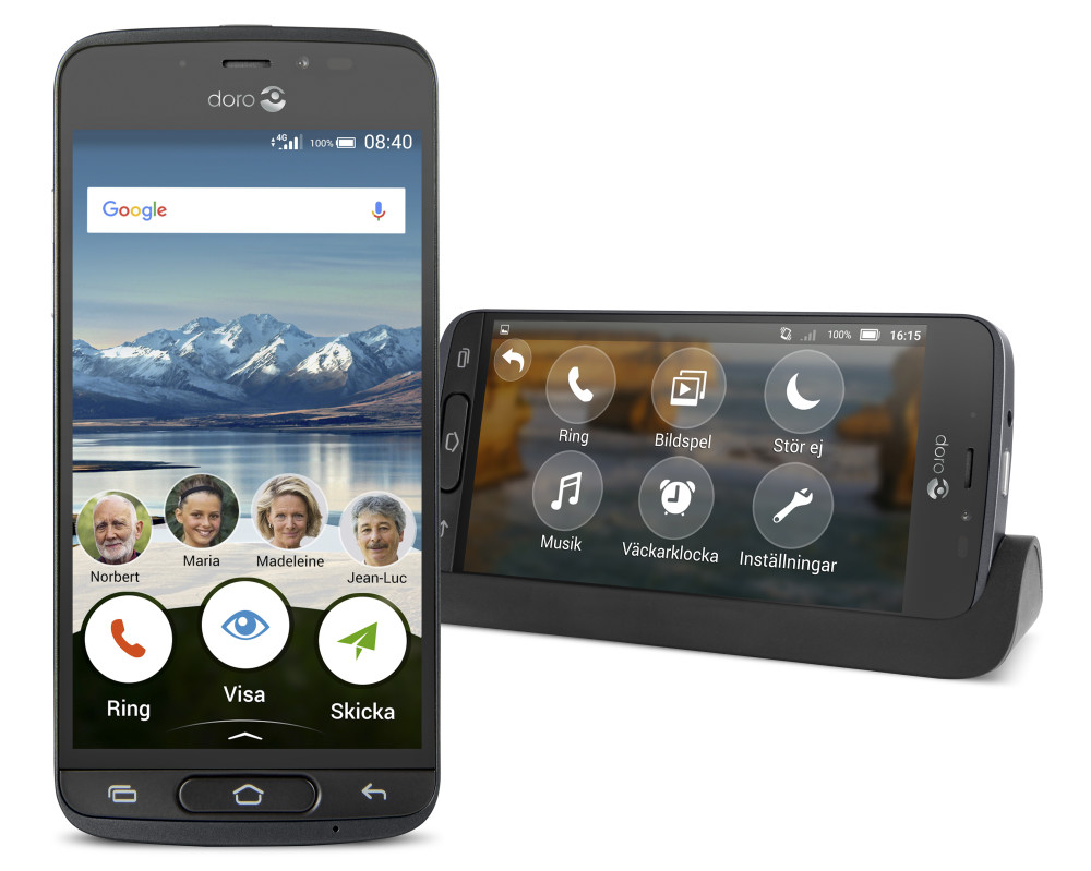 På nya modellen 8040 har tillverkarna valt att fördubbla minnet så det numera finns 2 GB RAM och 16 GB minnesplats. Operativsystemet är Android 7.1 (Nougat), det finns en bakre 8 MP kamera med blixt och förstås Doros egna hjälpfunktioner som bland annat webbtjänsten My Doro och en inbyggd assistent som visar och förklarar hur olika funktioner funkar. Medföljer gör också den horisontella laddstationen som kan funka som klocka, alarm eller liknande.
