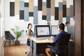 En annan produktnyhet går under namnet ”Room Panorama” och är en videolösning för större konferensrum. Dena har ai- och ar-funktionalitet som virtuella namnskyltar och information om den som talar samt direkttranskribering av möten.