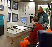 Längst bak på varje borrmaskin sitter det två stora trummor. Den ena innehåller den strömkabel som matar ström till driften. Den andra håller ordning på den fiberkabel som används för telefoni och datatakommunikation, bland annat mellan borrmaskinens server och den centralt placerade servern på konsortiets kontor. Det finns alltså en mycket god kapacitet för den ip-telefoni som används för att hålla samman alla delar och som sköter om så att man alltid kan få tag på rätt medarbetare, även ute vid själva borrhuvudet.