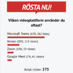 Under några veckor har Telekom idag haft en omröstning på sajten för att få en känsla för vilken som är den populäraste videomötes-tjänsten på den svenska marknaden.