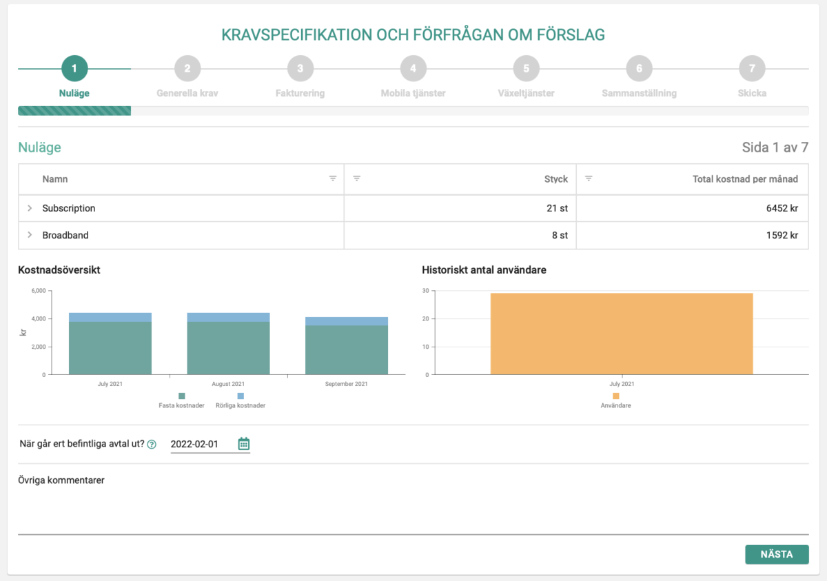 När du fyllt i en kravspecifikation kring faktura, växel eller andra önskemål så får du därefter en offert från Soluno, en av de största spelarna för molnväxlar på den svenska marknaden, som tar in förslag från de operatörer som kunden vill ha erbjudanden från.