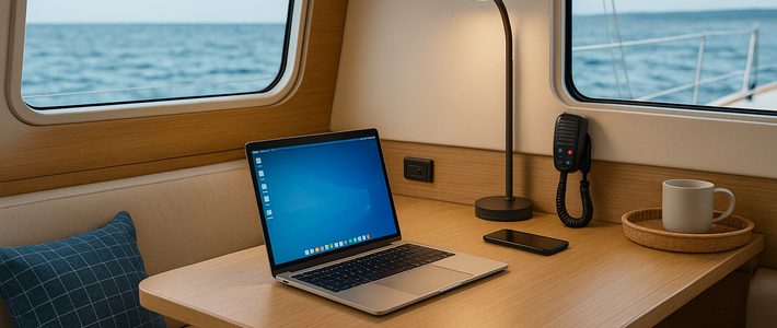 Distansarbete och hybridkontor har blivit vardag för många. Med moderna 4G/5G-routrar och marina WiFi-system är det idag fullt möjligt att hålla videomöten från sittbrunnen eller följa verksamheten via en laptop i kajutan.