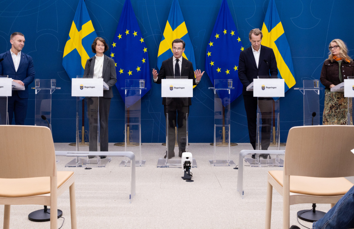 Statsminister Ulf Kristersson och civilminister Erik Slottner presenterade på fredagen regeringens nya nationella AI-strategi. Vid pressträffen deltog även företrädare för näringsliv och forskning, däribland Sara Mazur från Knut och Alice Wallenbergs stiftelse och Anders Eriksson, vd för Bonnier News.