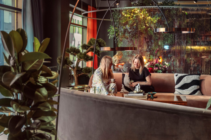 Som besökare blir man direkt slagen av den stora variationen som finns bland de olika ytorna. I receptionen får man en känsla av en härlig loungeyta med varm belysning. Receptionen är medvetet inspirerat av en klassisk bar där människor kan mötas och konversera.