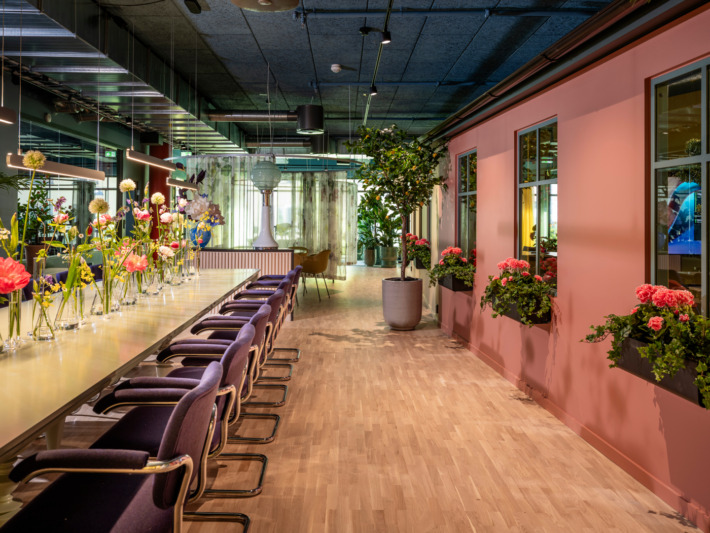 – Vi ville skapa ett hjärnvänligt kontor där vi får rätt förutsättningar för att både prestera, minska stress och öka välmåendet, och vi mår som bäst i miljöer som påminner om naturen när den är som frodigast. Vintermiljöer, med en färgsättning likt en motorväg en slaskig och grå februaridag, triggar stress och därav adderade vi mer färg och växter, säger Mossfeldt.