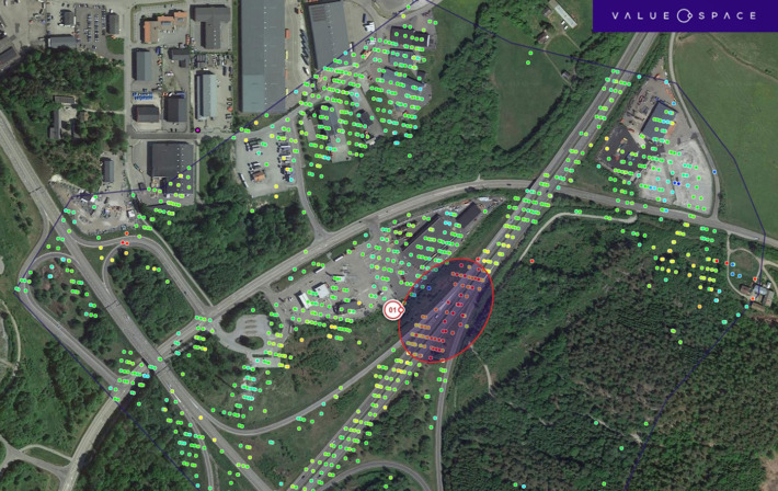 Med hjälp av färgkodning är det lätt att få en överblick över de tillgångar som övervakas. Grön markering indikerar exempelvis stabilitet under de senaste två åren medan blått visar att området har höjts. Enligt Value Space är tekniken mycket bra på att upptäcka processor som sker i långsam takt, så att man hinner agera tid och förebygga större katastrofer.