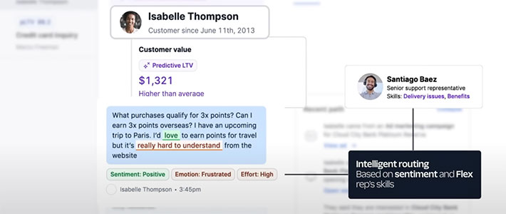 Flex är Twilios egen molnbaserade kontaktcenterplattform. Här samarbetar man med Google Cloud för att kunna erbjuda en funktion som ger skräddarsydda rekommendationer för hur kundservicemedarbetare ska kommunicera med kunderna. Det finns också ai-baserade funktioner för att skapa en automatisk sammanfattning av avslutade ärenden.